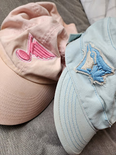 I'm not one to choose pastels but I guess lavender or pastel blue would be my favorite of those colors. What do I even own in pastel? Hmmm. Well . . . my two favorite ball caps happen to be pastel colors, and since they may be the only pastel colored things I own, I guess they are my favorites.