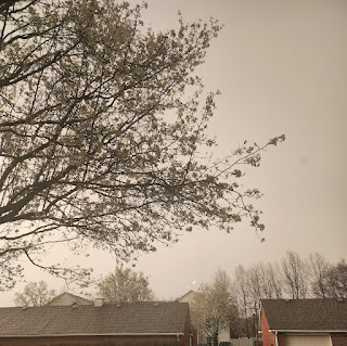We were very glad that the severe weather warnings for our area yesterday turned out to be mostly warnings, and less severe weather than we were prepared for. Lots of rain, and very heavy rain at times, thunder and lightning, but I don't believe there were any tornados around us this time. There was some flooding that made the morning commute a slow one. These photos were taken outside our apartment, within about a forty-five minute span of time. No filters - look at how the color of the sky changed!